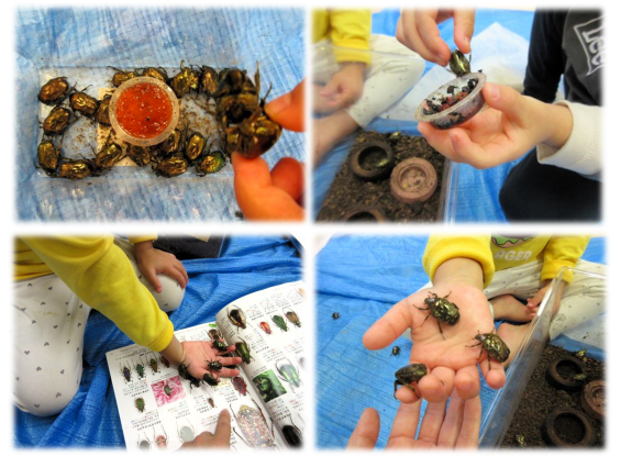 そして、同じように子どもたちの心をつかんでいるのが、絶妙な光沢を放つハナムグリたちです。